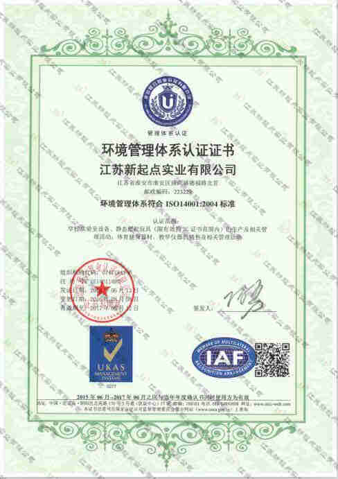 江苏新起点实业有限公司成立于2013年,坐落于周恩来总理的故乡—江苏省淮安市。是一家集研发设计、生产制造、 营销推广为一体的大型健身器材、体育器材、教玩具生产企业。公司总投资1.8亿元,总占地面积 16万平方米,目前在册职工350余名,各类专业技术人员100余名。 作为一家以成为行业领跑者为目标的企业,公司坚定的以符合国家与世界行业发展趋势的新理念与新标准作为企业经营与管理的基础与核心,具有现代科学管理水平和高科技研发能力,拥有多项自主创新产品与国家专利。 公司以科学化、信息化、规范化管理为标准,先后通过了ISO9001:2008 国际质量管理体系认证、 ISO14001:2004环境管理体系认证、GB/T28001-2001 职业健康安全管理体系认证。 目前,公司是中国体育用品业联合会会员单位、中国教育装备行业协会会员单位,并且相继获得中国高新技术企业、江苏省著名产品、重合同守信用、 中国教育装备行业知名品牌、全国质量信誉服务AAA级企业、国家检测重点实验室等荣誉称号,企业资信获评AAA级。产品质量与保险责任保险均由中国平安保险公司承保。 新起点,新未来!公司视产品质量为公司生存的基础,坚持品质引领发展、创新成就未来的企业核心价值观。将质量意识与创新意识传递到每个角落,灌输给每个员工。我们围绕产品质量开展技术创新、人才模式创新和管理创新,持续提升产品品质与性能,建立差异化的品牌定位。新起点人不惧困难、敢于创造,在新时期、新机遇的召唤下,抒写着属于每一个新起点人的美好未来。